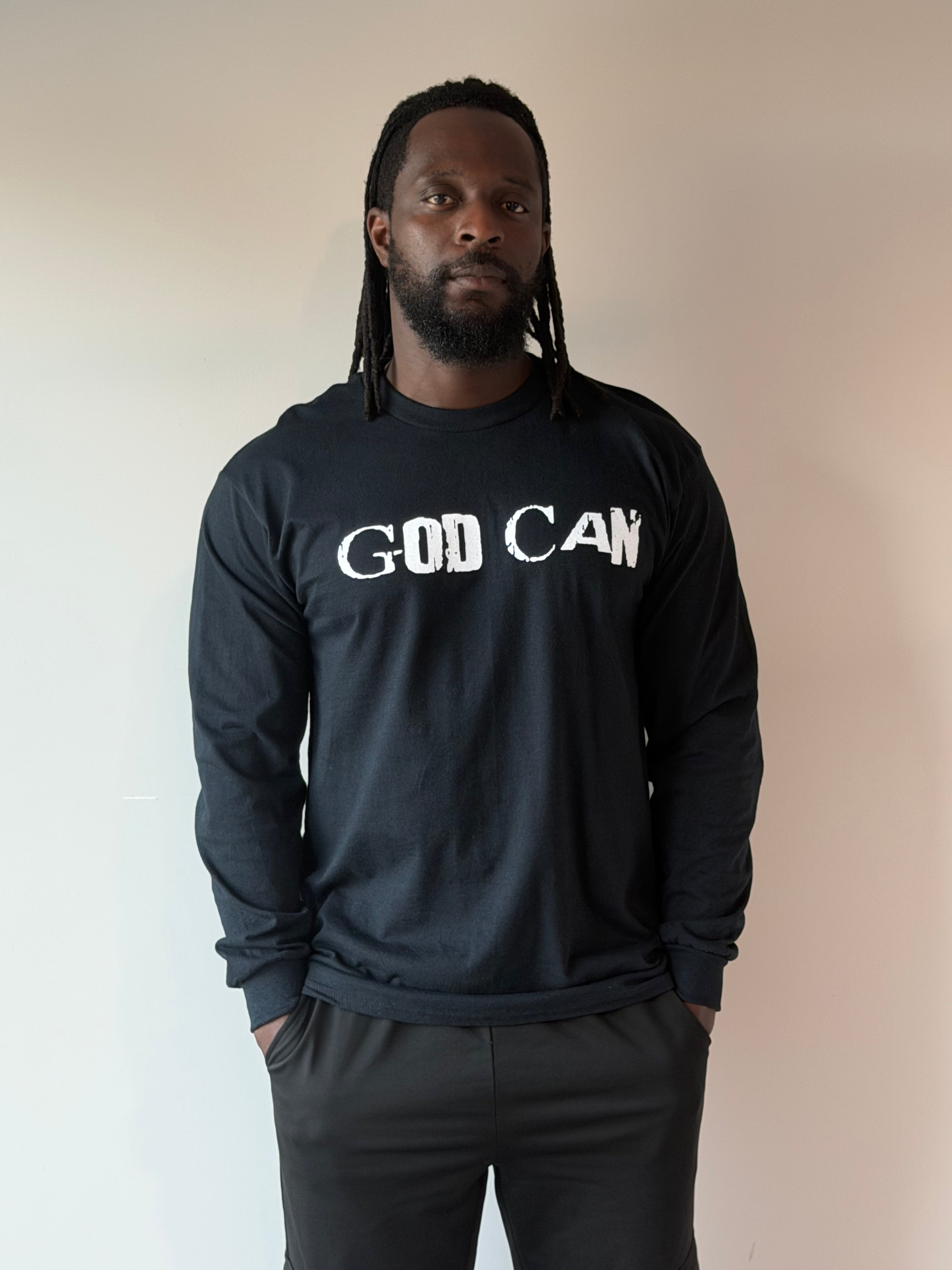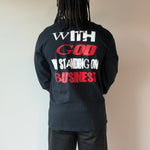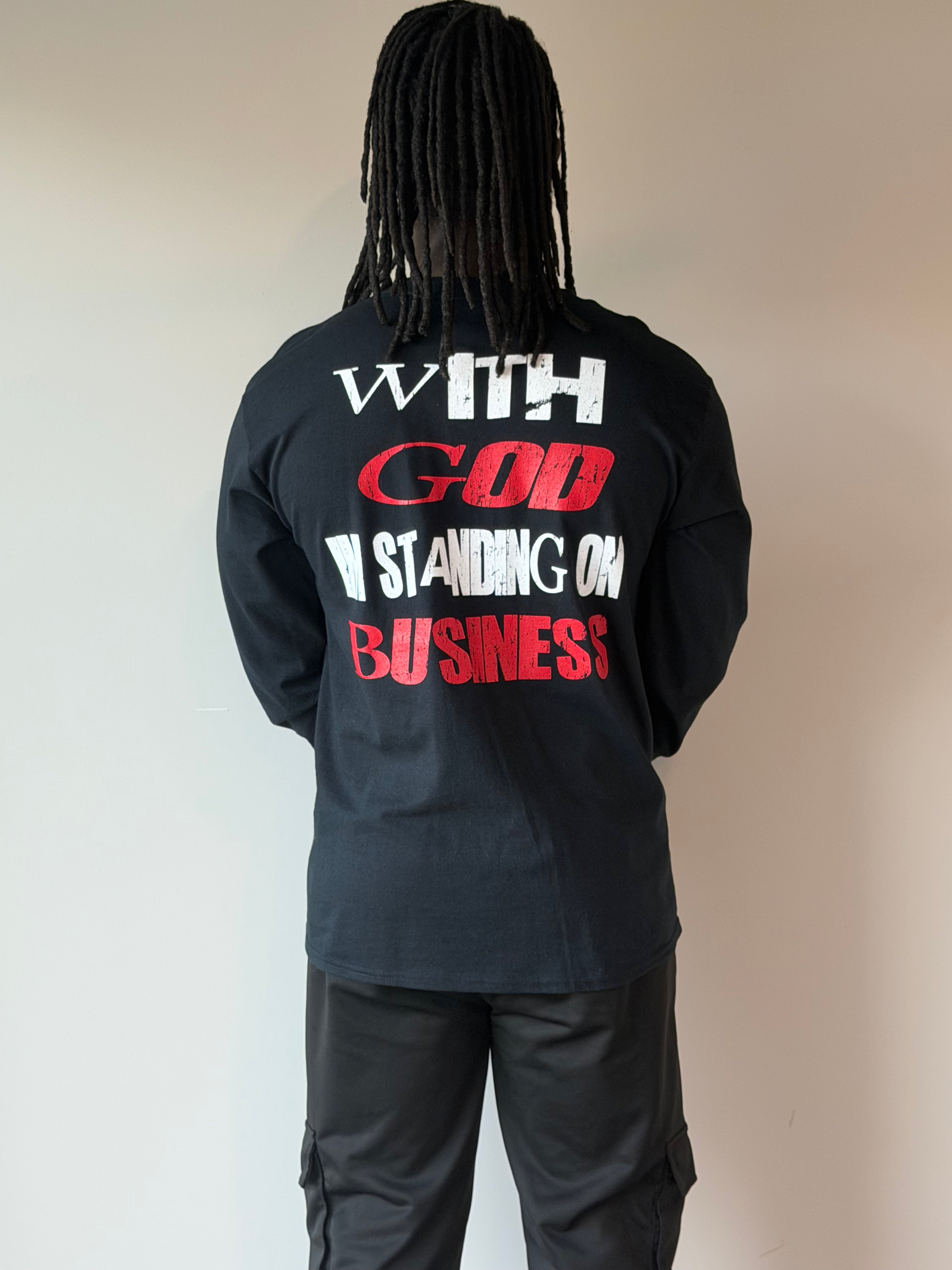 Step out bold and rooted in purpose. This black long-sleeve tee features our statement design in crisp white and powerful red, reminding you—and everyone around you—what you stand on. Crafted for comfort, confidence, and conviction, this piece carries the energy of faith in motion. Whether you’re grinding, growing, or going through it, this tee says it all: